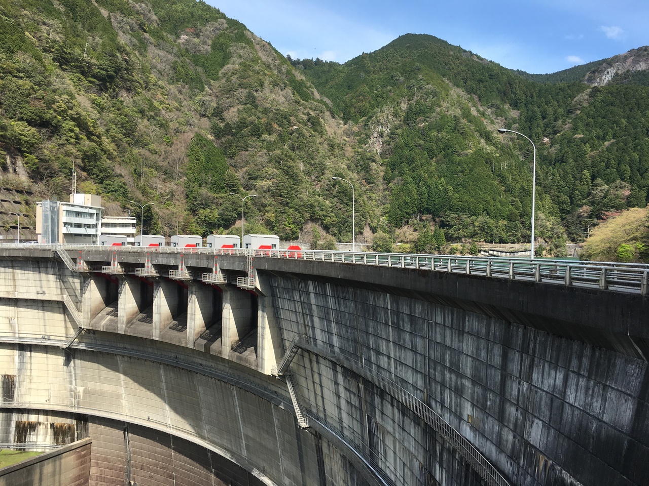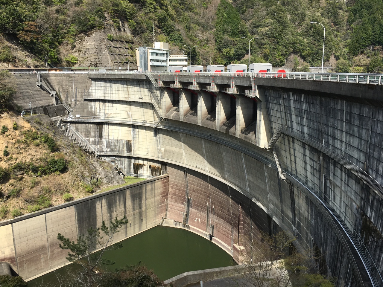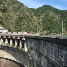 駐車場があり、ダムの下を見ると物凄い迫力でした。水が少なかったせいか上から見るとかなり下に水がありました。反対側の貯水しているエリアには水が多く湖のようで、ダム沿いには道があります。駐車場横にトイレもあります。