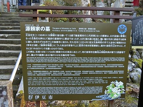 源頼家は、鎌倉幕府2代将軍です。頼家は将軍でありながら、祖父・北条時政によって修善寺に幽閉され、さらに入浴中に襲撃を受けて21歳という若さで暗殺されました。お墓は武家の頂点に立った者とは思えない大変質素なもので、それがまた悲愁を漂わせていました。すぐ近くには、頼家の遺臣で頼家暗殺6日後に決起したものの、殺害された十三士のお墓もあり、主従ともども静かに眠りについていました。