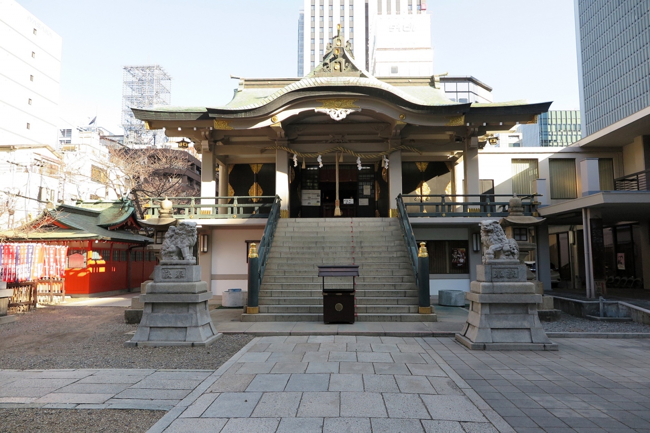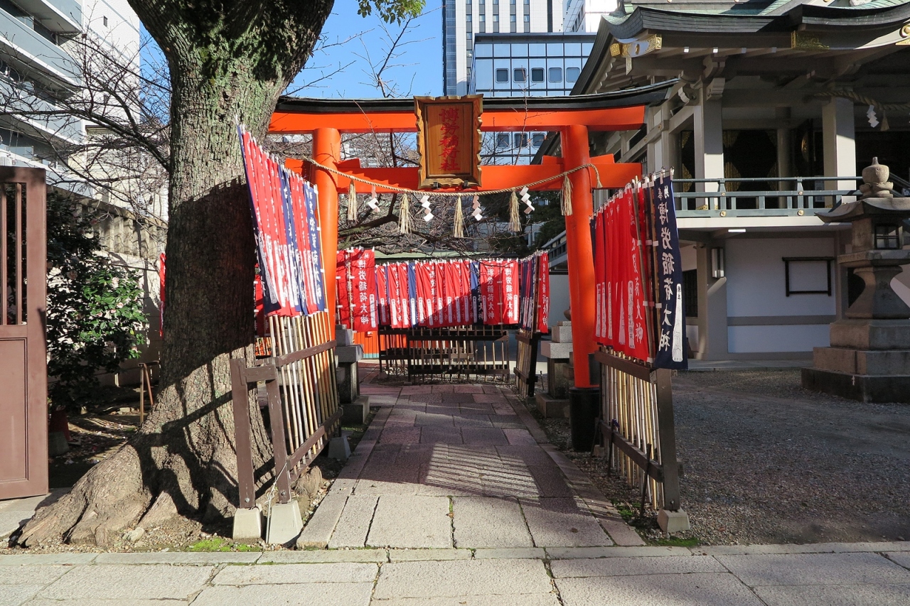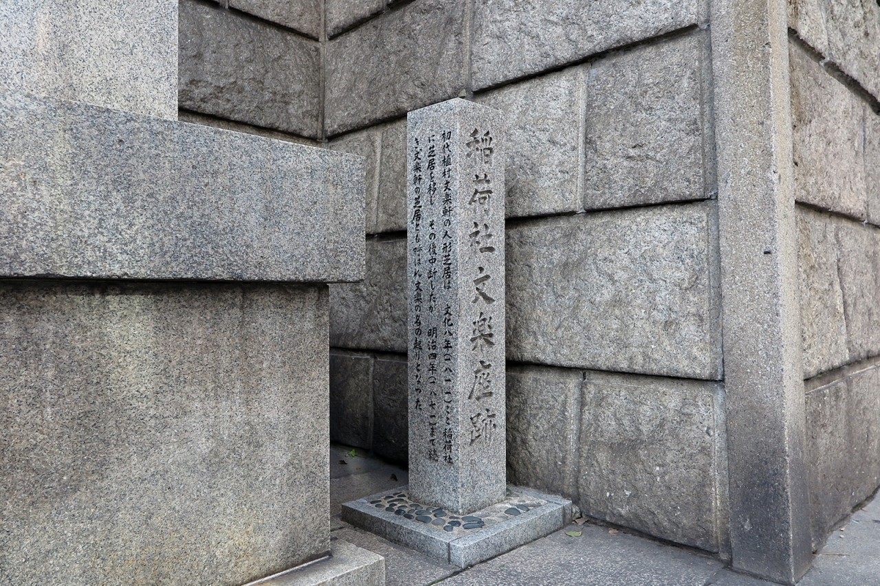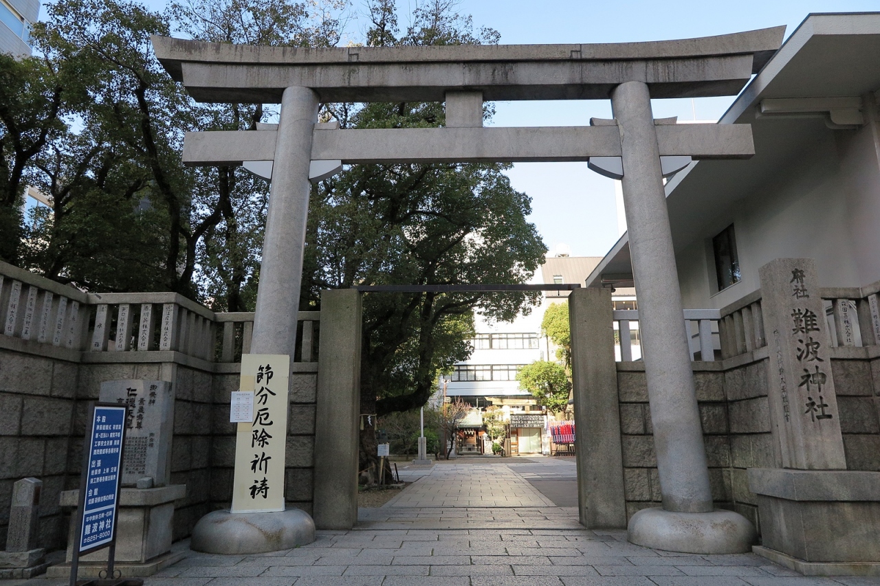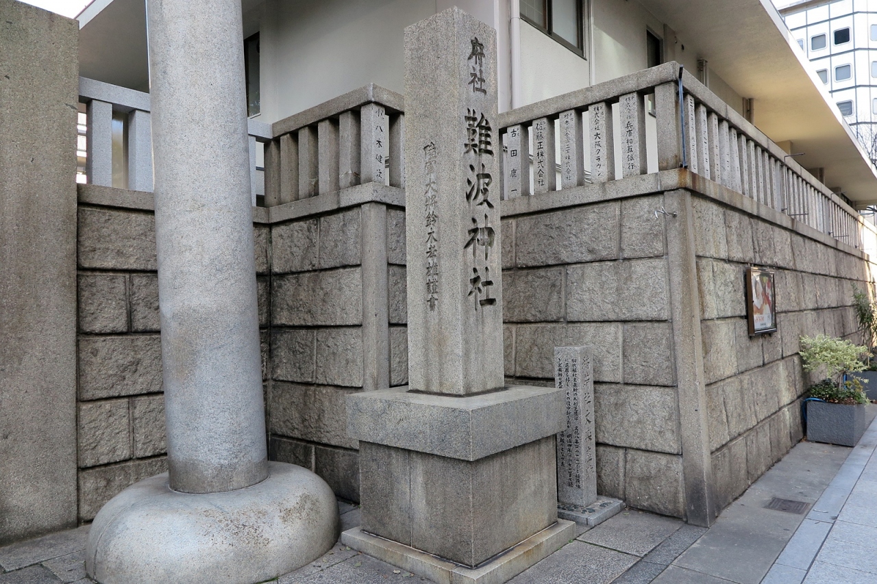 反正天皇が父親の仁徳天皇を御祭神として創建したという由緒正しい神社です。ただし、さすが船場、境内にある「博労稲荷神社」が商売繁盛の神様として船場の商人から篤い信仰を受けているようです。また文楽とも深い関りを示す碑もありました。
