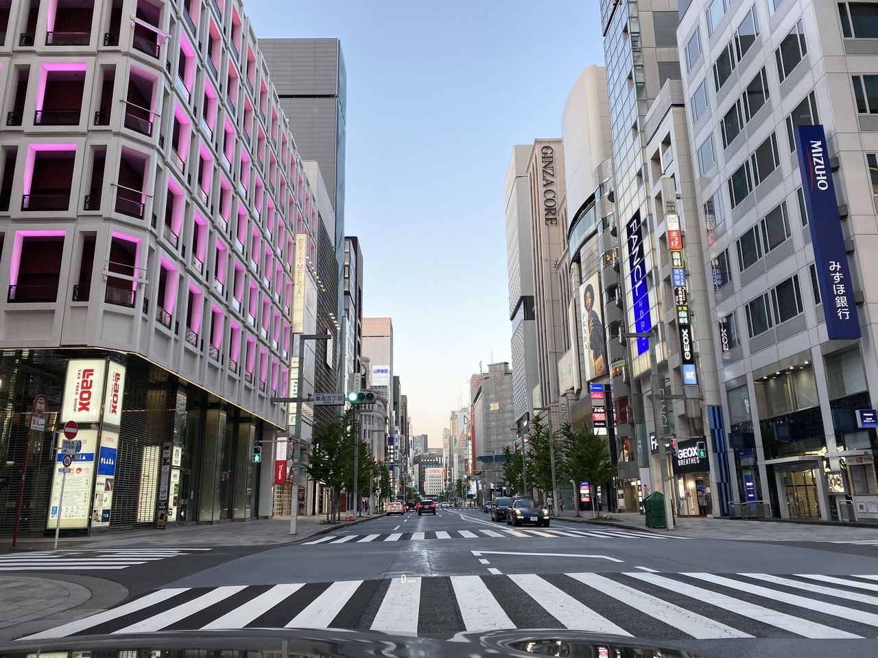 新型コロナウイルスの緊急事態宣言を受けて、お店はほぼ閉店。人通りも極端に減っていました。歩くには抵抗があったので、中央通りをクルマで通ってみることに。車道も普段とは打って変わってガラガラ状態。特にタクシーが全然いませんでした。活気のある銀座とはまるで違い、夕方というのもあってか何となくノスタルジックだなと、そんな雰囲気でした。以前のような爆買い状態とまではいかなくても、早く活気が戻ることを願うばかりです。