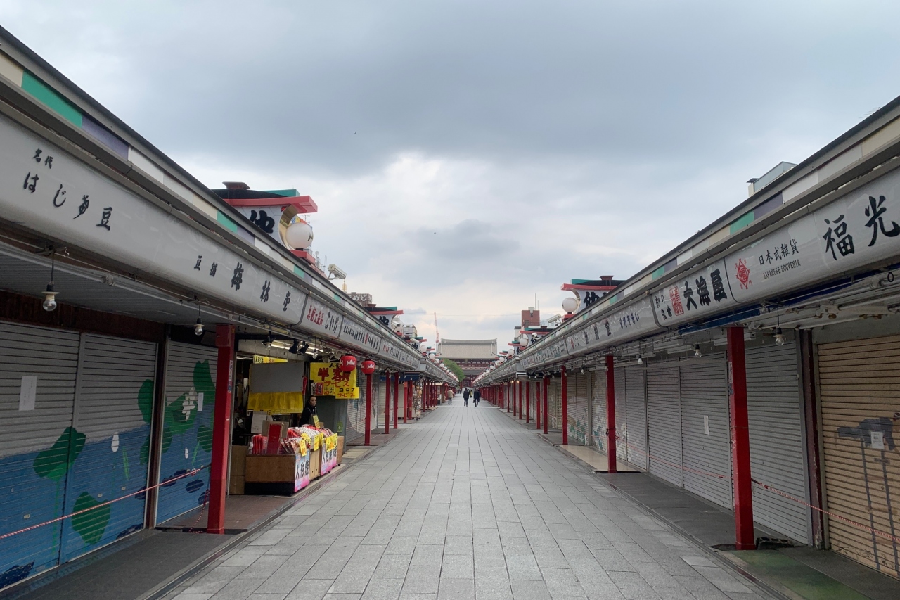新型コロナウイルス感染拡大防止で非常事態宣言が出ている為、浅草寺周辺は、閑散としていました。それでも観光客向けの人力車が営業していたのには驚きです。