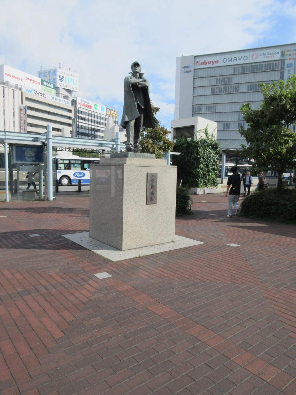岡山駅後楽園口(東口)にある銅像です.桃太郎像と並んで岡山駅のシンボル的存在になっているようでした.現在の岡山大学が旧制第六高等学校であった頃の学生(マント,学生帽,高下駄)をデザインした銅像で,かつてのエリート学生を象徴するように,腕組みした姿は,現在の学生像とはかなり違って見えます.それほど大きくないので見逃してしまうかも知れませんが,見る価値は十分にあると思いますので,是非立ち寄ってみて下さい.