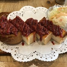 コンビーフ・トーストというのを初めてみたので頼んでみました。厚切りのパンにコンビーフ、そしてまさかのケチャップで、これがなかなか美味しい。添えてあるポテトサラダもおいしい。これでコーヒーとセットで700円ちょっとはとてもリーズナブルで嬉しいですね。
