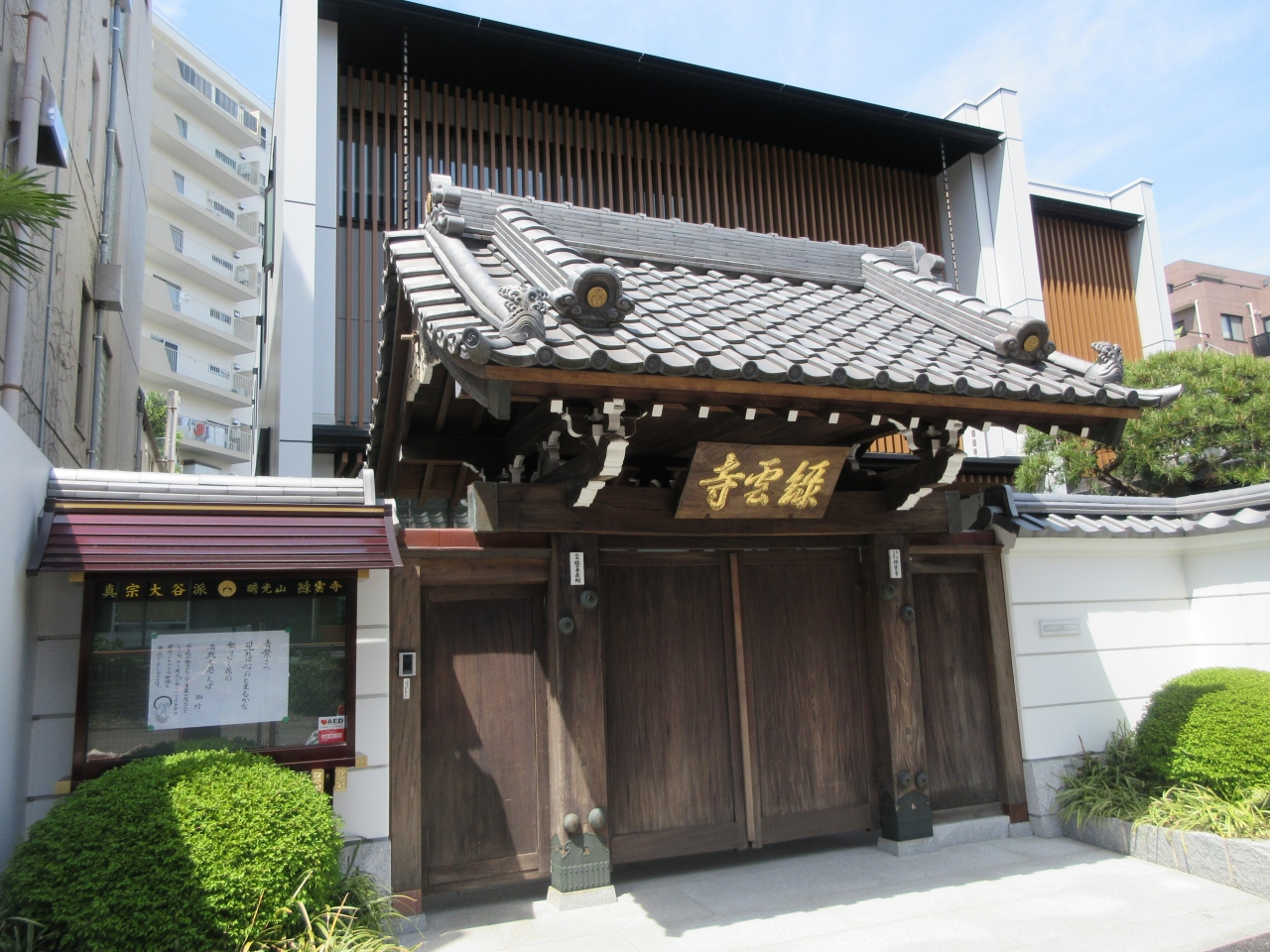 牛込柳町駅から4分ほど外苑東通りを北へ進んだところにある浄土真宗寺院です。訪れた時は外苑東通り脇が道路工事中で、墓地が工事地区の隣でした。風情ある木造山門と鉄筋コンクリート造りの新しいビルのような本堂のアンバランスに興味持ちました。門が閉まっていたので入ることはできませんでした。原町の寺巡りの際に寄るくらいでいいと思います。