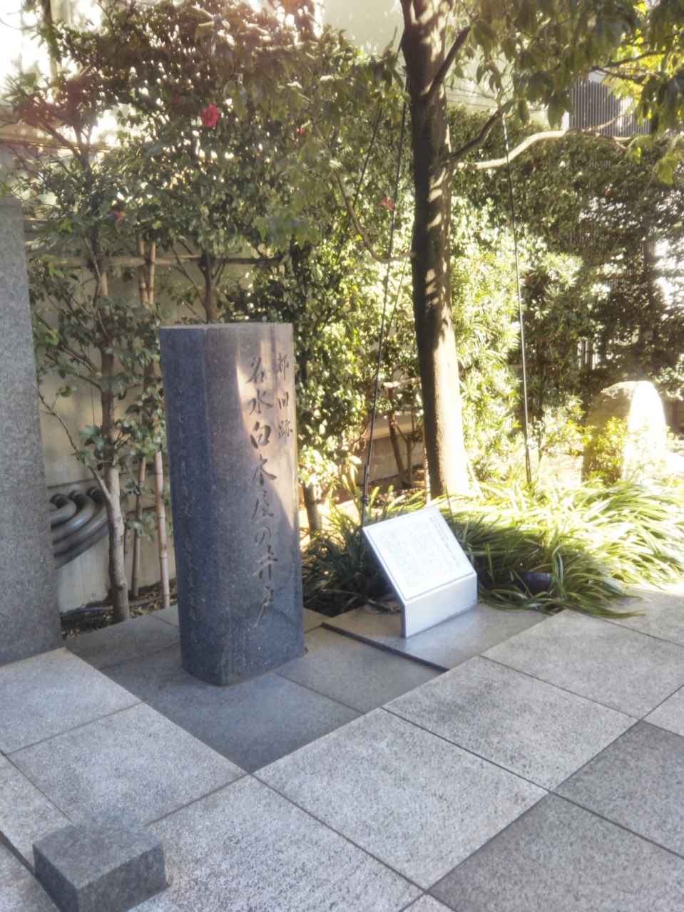 「COREDO 日本橋」のアネックス広場に『名水白木屋の井戸』があります。以前は「白木屋」でしたので、日本橋北側の越後屋と並ぶ呉服の大店で、水に困っていた際に2代目彦太郎が私財を投じて井戸掘りに着手したまたま井戸の中から一体の観音像が出たのを機に井戸を掘り当てたそうです。江戸庶民だけでなく大名までもが利用していたそうです。