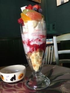 ここのお店は、地下鉄北18条駅を東側にちょっと行くと見える緑色の建物のお店でパフェとケーキが美味しいと人気のお店です。