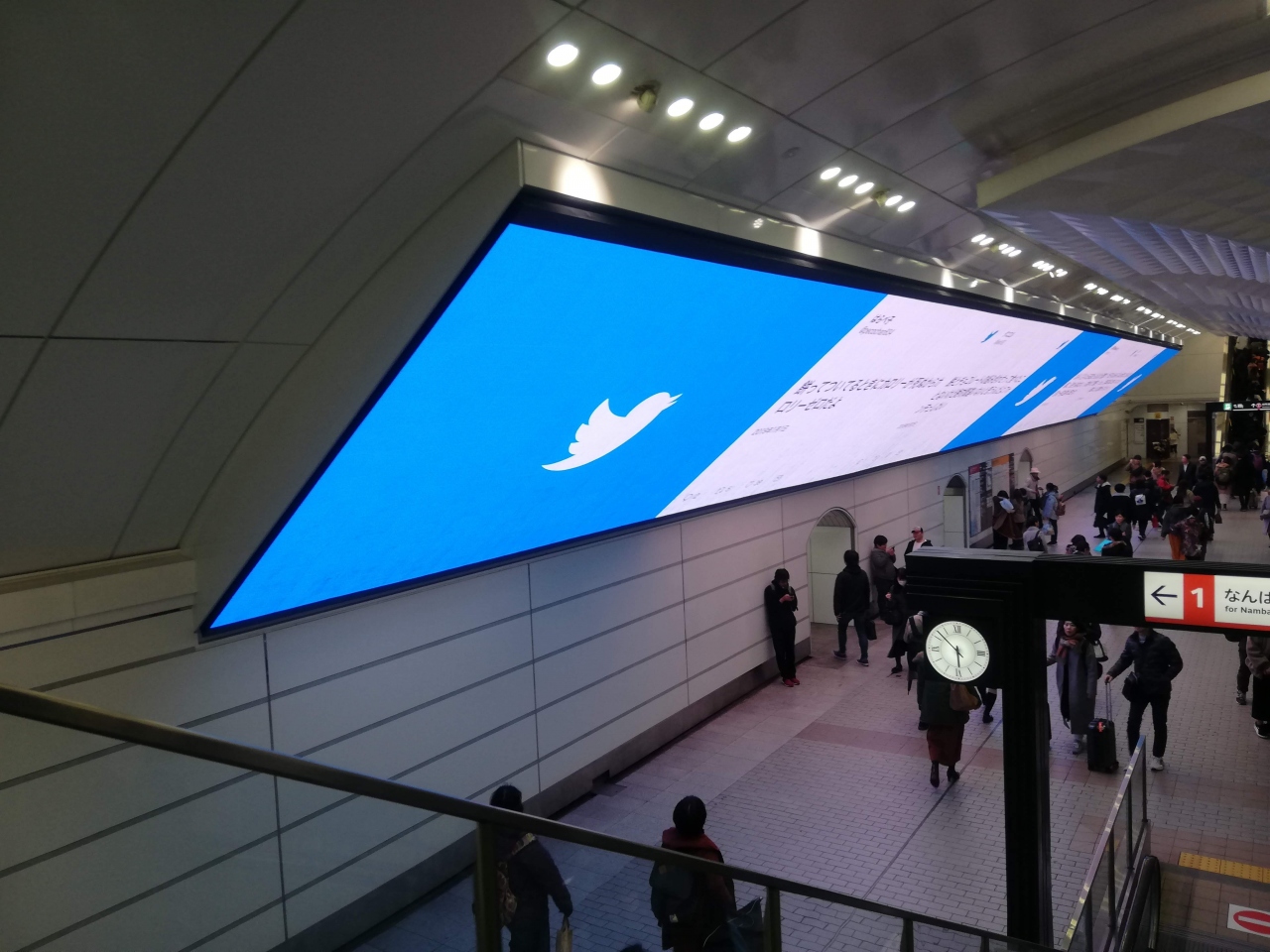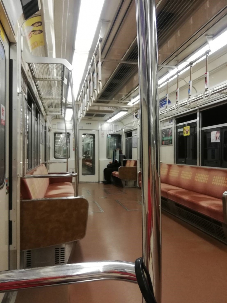 新型コロナウィルスの緊急事態宣言発令中に、御堂筋線を利用しました。平日午後3時頃というラッシュではない時間帯というのもあるかと思いますが、各車両に3~5人程度しか乗っていませんでした。梅田駅の上り線のホームに巨大なLEDビジョンがあります。「地下空間世界最大のLEDモニター」として、ギネスブックにも認定されています♪
