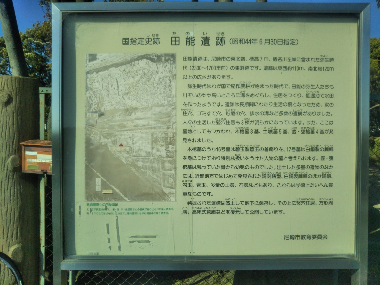 何度か通った道ですが気づかず、今回猪名川の土手をポタリングしてると「田能資料館」の看板が目に止まり寄ってみました。道路沿いに数台分の駐車スペースがあります。中は資料館と弥生時代の住居跡を再現した遺跡が数棟配置されそれぞれ音声案内も聞くことができます。資料館の方はコロナ影響から残念ながら当面閉鎖となってました。