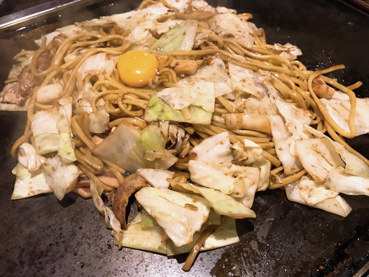 焼きそばは生卵がのっていてまろやかで美味しかったです。