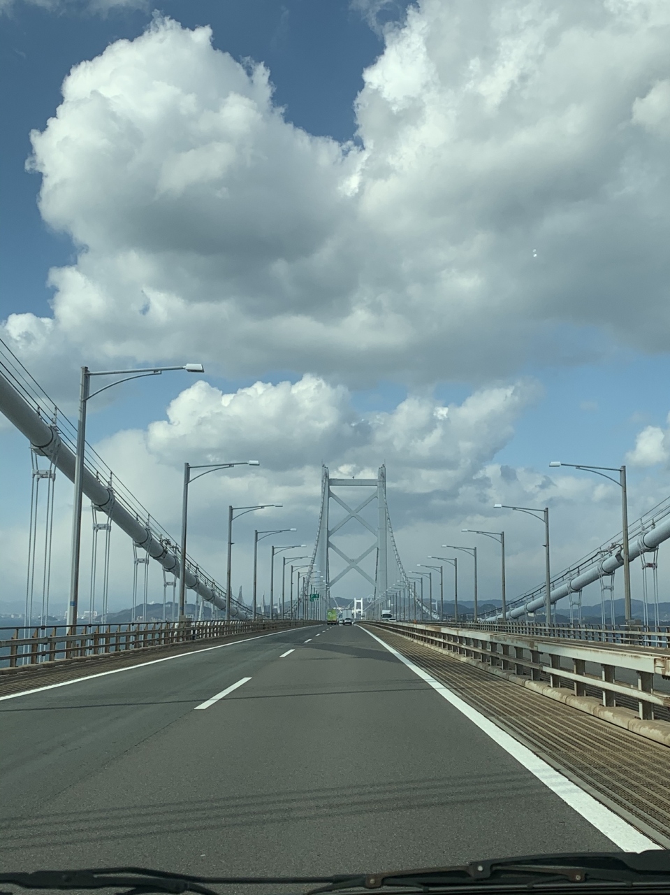香川県から岡山県に入る際にある大きな橋を利用しました。瀬戸大橋にはスカイツアーと言うものがあり橋の上に上ることができる特別ツアーがあるそうです。参加してみたかったのですが、日にちが限られていて要予約なので今度機会があればチャレンジしてみたいと思います。
