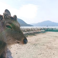 港からお出迎えしてくれる鹿に触れたり、