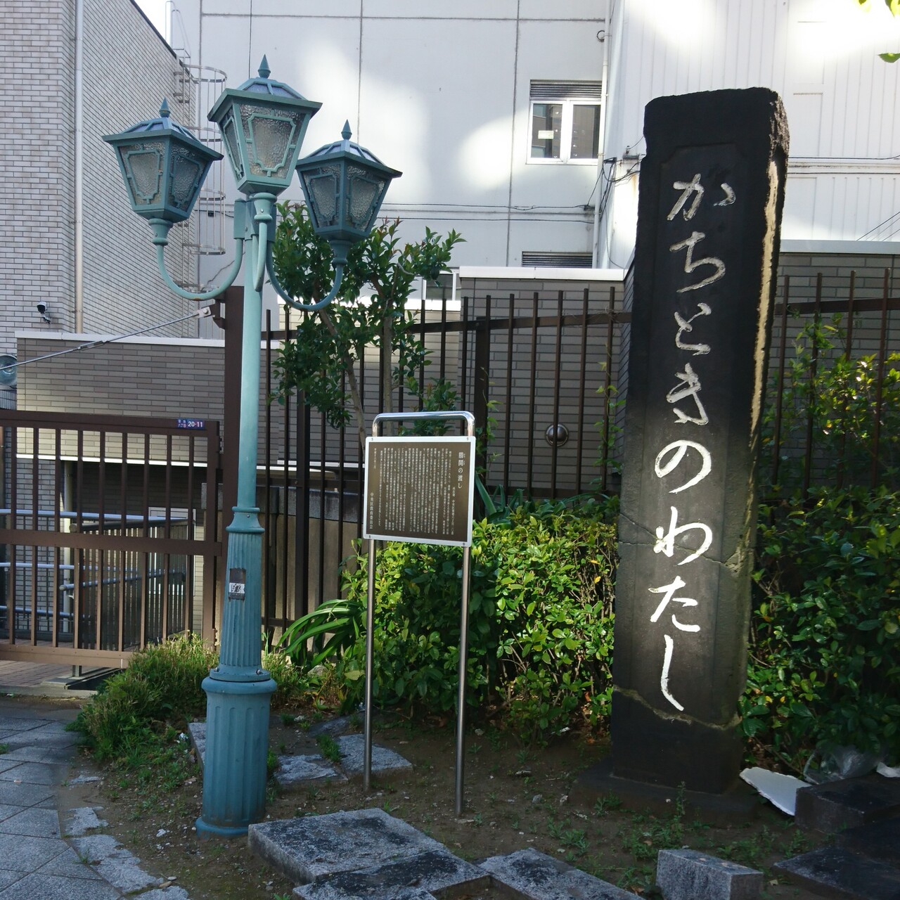 築地から勝ちどきまで散策を楽しんで切るときにこちらの、石碑をお見かけ致しました。昔は橋は架かっておらず、舟で往来していたのことでした。歴史を知るきっかけとなったので良かったですが、観光客はおりませんでした。