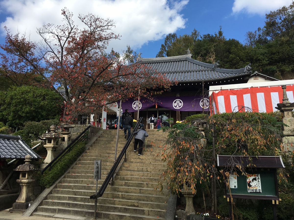 野崎詣りとして知られるお寺。アクセスは学研都市線野崎駅から徒歩で10~15分のところです。ただし境内には急な階段もあります。お堂自体は新しいものですが、大東市の指定文化財の仏像もあります。飯盛山城へ訪れるため、立ち寄りました。野崎観音の裏手から登ると、野崎城址、飯盛山城跡にアクセスできるハイキングルートがあります。同じ装いの方が多くいらっしゃり、登山前の安全祈願にもいい場所です。