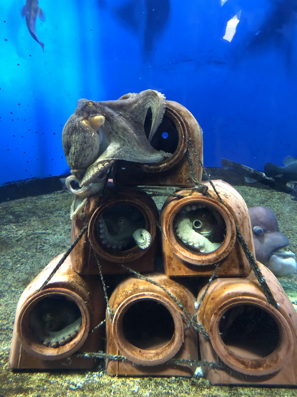 キラキラの鯵、壺に隠れている蛸、くらげ、カクレクマノミ、鮫、マンボウなど見どころだらけでした。