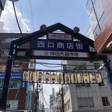 JR神田駅西口でてすぐのところから、大手町、皇居方面へ伸びている賑やかな商店街です。