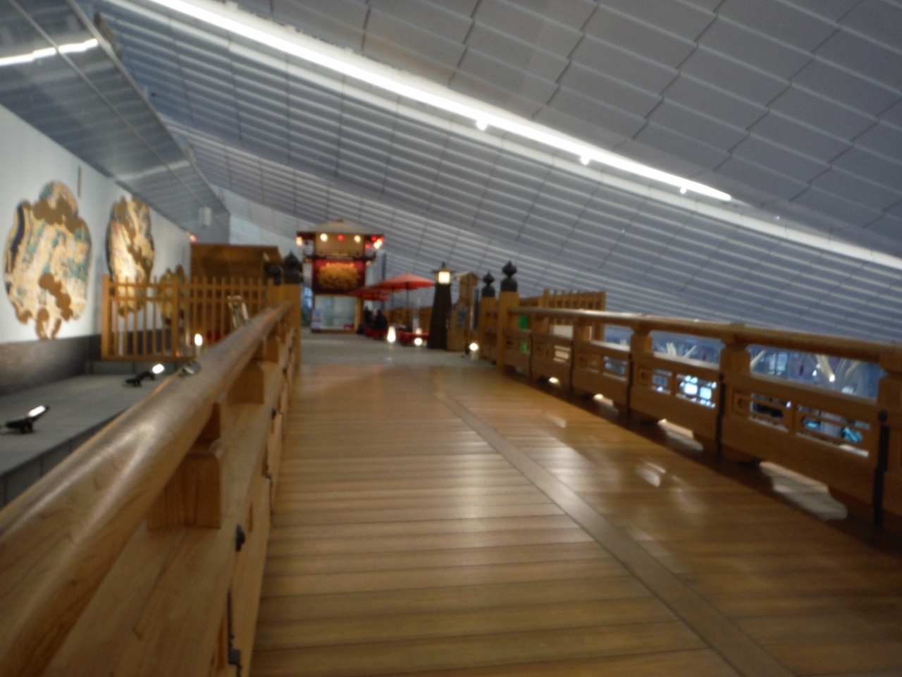 羽田国際空港の出発エリアにある写真スポット「はねだ日本橋」。荷物を預けて時間があったので暇つぶしがてら行ってみました。1603年に架けられた日本橋を二分の一のスケールで再現。檜をつかっているそうです。橋のたもとには「旅立ちは今も昔も日本橋」と書いてあるので旅行気分が高まります。