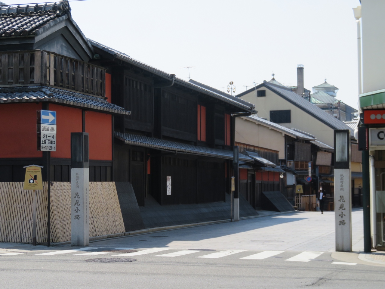 いかにコロナの影響とはいえ、人がいない花見小路も不気味である。いつも観光客があふれている時には、邪魔で仕方なかったが、コロナの影響でいざ人っ子一人いないと不安になり、街並みを楽しむどころではなかった。向こうから人が来ると安心する不思議さ。
