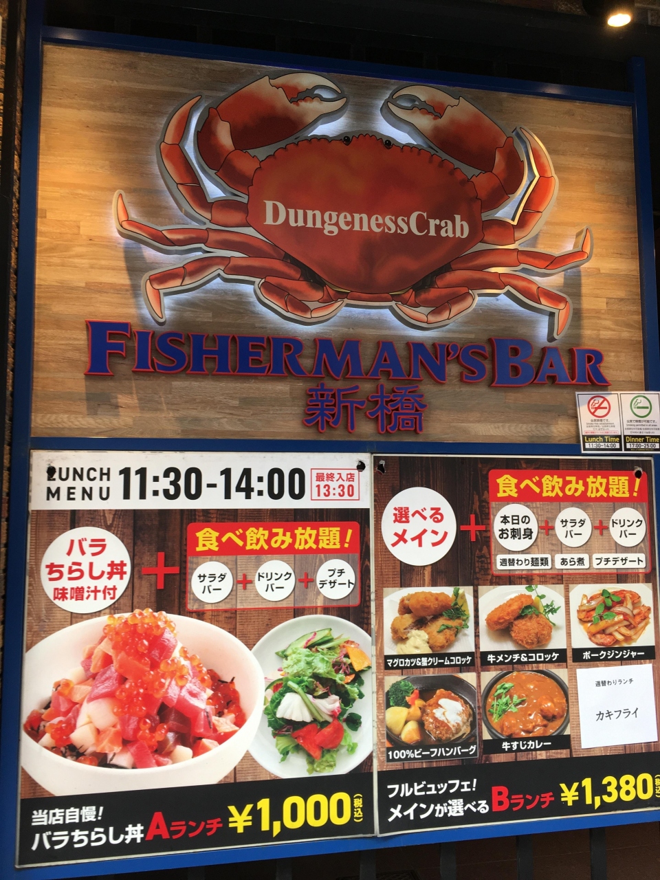 新橋駅から歩いてすぐ、SL広場や烏丸神社からも歩いてすぐのところにあり、平日限定ですが、ランチタイムにブッフェをやっています。選べるメイン料理に海鮮丼、サラダ、麺料理、ソフトドリンクが飲み放題・食べ放題でお得です。