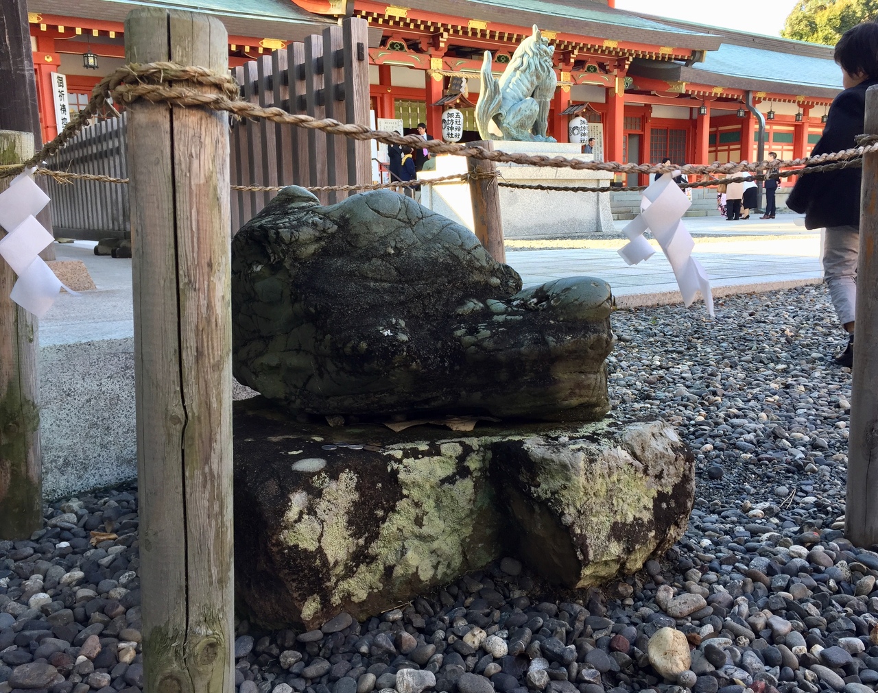狛犬のさらに手前にある御神岩の「獅子頭岩」は、自然石ということにびっくり。