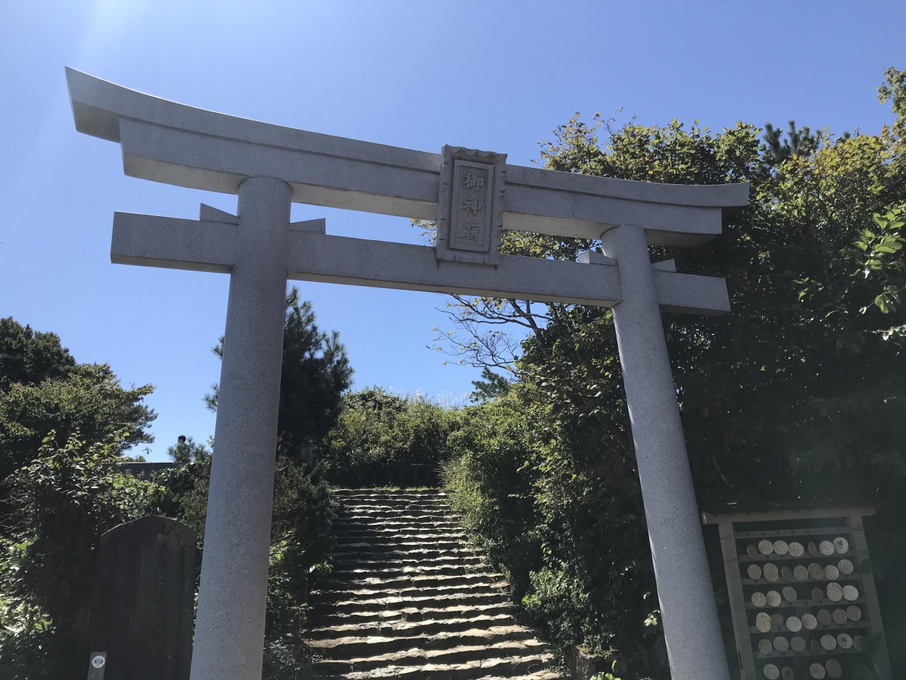 弥彦神社の奥の宮へはロープウェイで向かいました。そのあとは山頂の奥の宮まで徒歩ですが、ほぼトレッキングです。奥の宮手前には社務所があり、神職が奥の宮で飲み授かれる御朱印を授与してくれました。山頂からの景色も絶景でした。