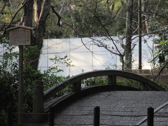 熱田神宮に参拝に行きましたが、その境内にある橋です。場所は少し参道の横にそれた場所ですので、静かな場所でした。名前の通り25枚の板の石でできている橋です。現在は柵があって、中に入ったり渡ったりできないようになっていましたが、説明板もあってわかりやすいです。名古屋最古の石橋とのことです。すごいですね。