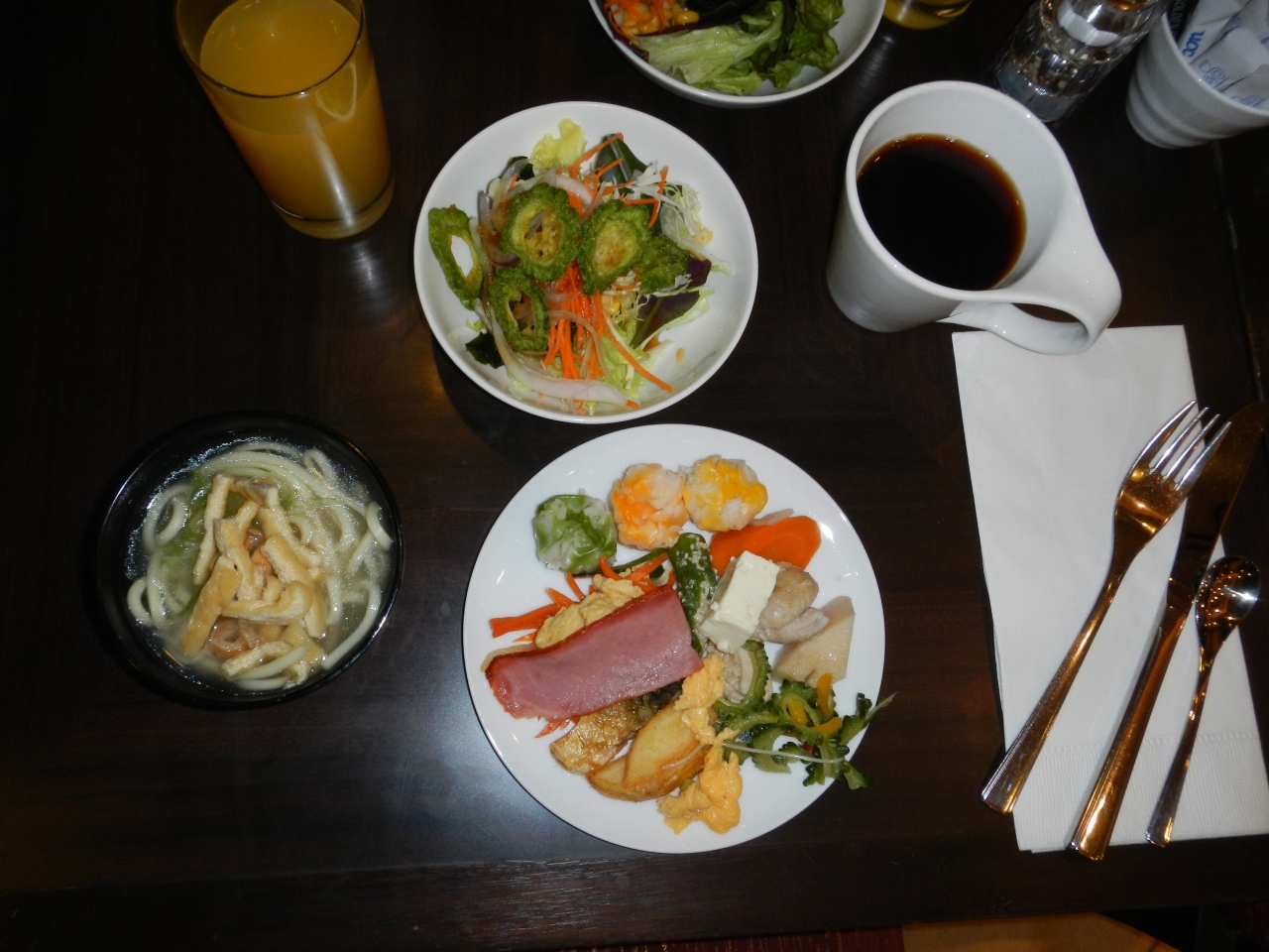 朝食ビュッフェには、バラエティーに富んだ和洋のメニューに加え、地元の素材を使用した沖縄ならではの郷土料理の数々(日替わりで、ゴーヤーチャンプルー、ニンジンしりしりー、モズクや沖縄そば等の郷土料理の数々)が並びます。