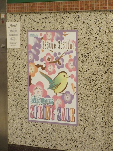 名古屋の観光で栄に行きましたが、その栄にある地下街がこの森の地下街です。サカエチカとつながっているので、正直どこから施設が変わったのか、ちょっとわかりにくいところもあるけれど、つながっている分いろいろ便利です。地下鉄はもちろん、オアシス21などとも直結いています。春のキャンペーン中でしたので、そのポスターもありました。お店はいろいろだけど、セブンイレブンや薬局などがあるのも便利。