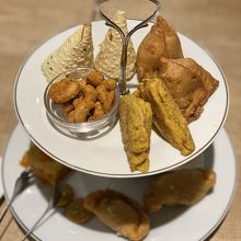 14時からカフェタイムになり(食事メニューも提供)マサラチャイが飲み放題となるのを知り訪問。アフタヌーンティーセットを注文。甘いものとスナックが盛り合わせになりメニューから選ぶ。