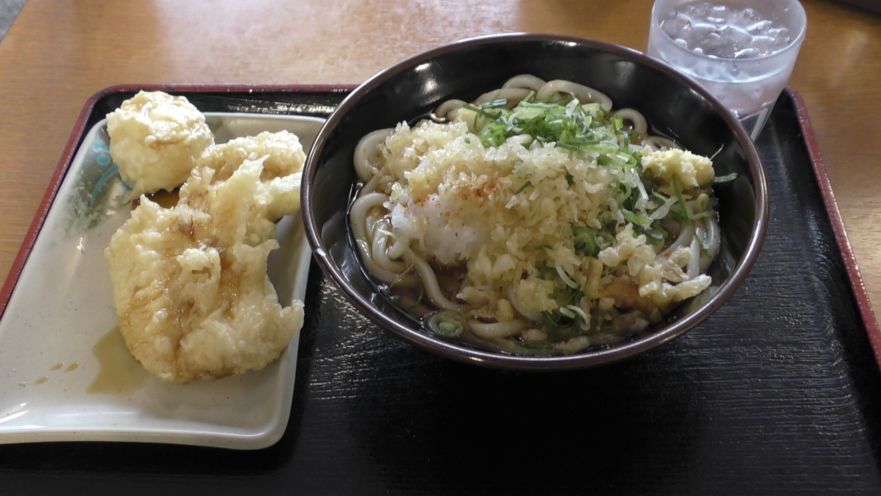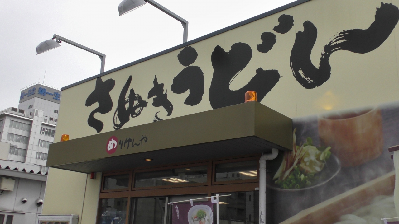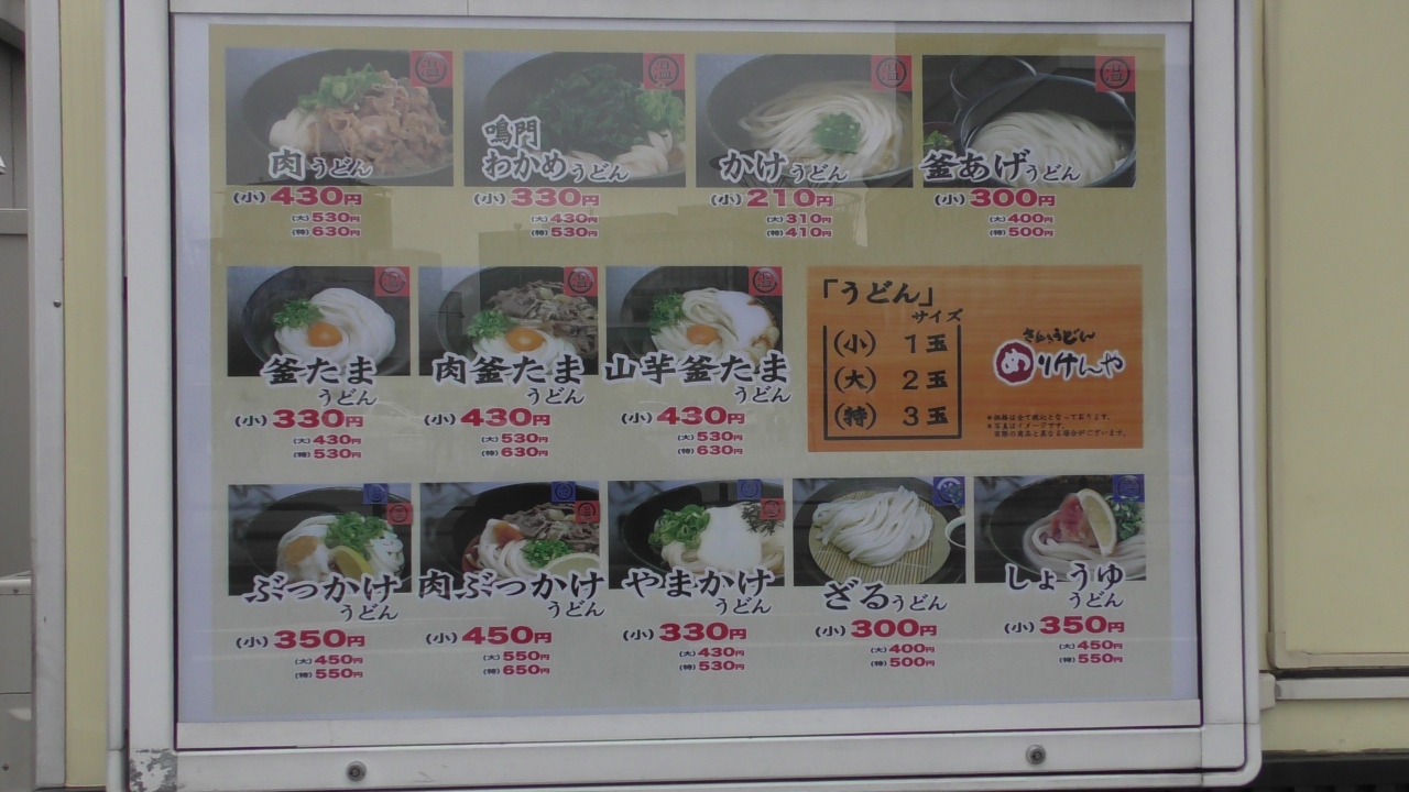 四国2日目も讃岐うどんを食べるべくここへ。「めりけんや」はJR四国グループの讃岐うどん店で、「親父の製麺所」の名前で首都圏にも展開しています。讃岐うどんらしく天ぷらも多数揃えていて、何にするか迷います。当初は釜玉を頼もうと思いましたが時間がかかるとのことなのでぶっかけに。半熟卵天、とり天とともに頂きました。うどんのサイズは1玉→小、2玉→大、3玉→特。天かすやねぎはセルフサービスで好きなだけかけられます。讃岐うどんのぶっかけはこしが強く食べた感があるのにさらっといけるのがいいです。