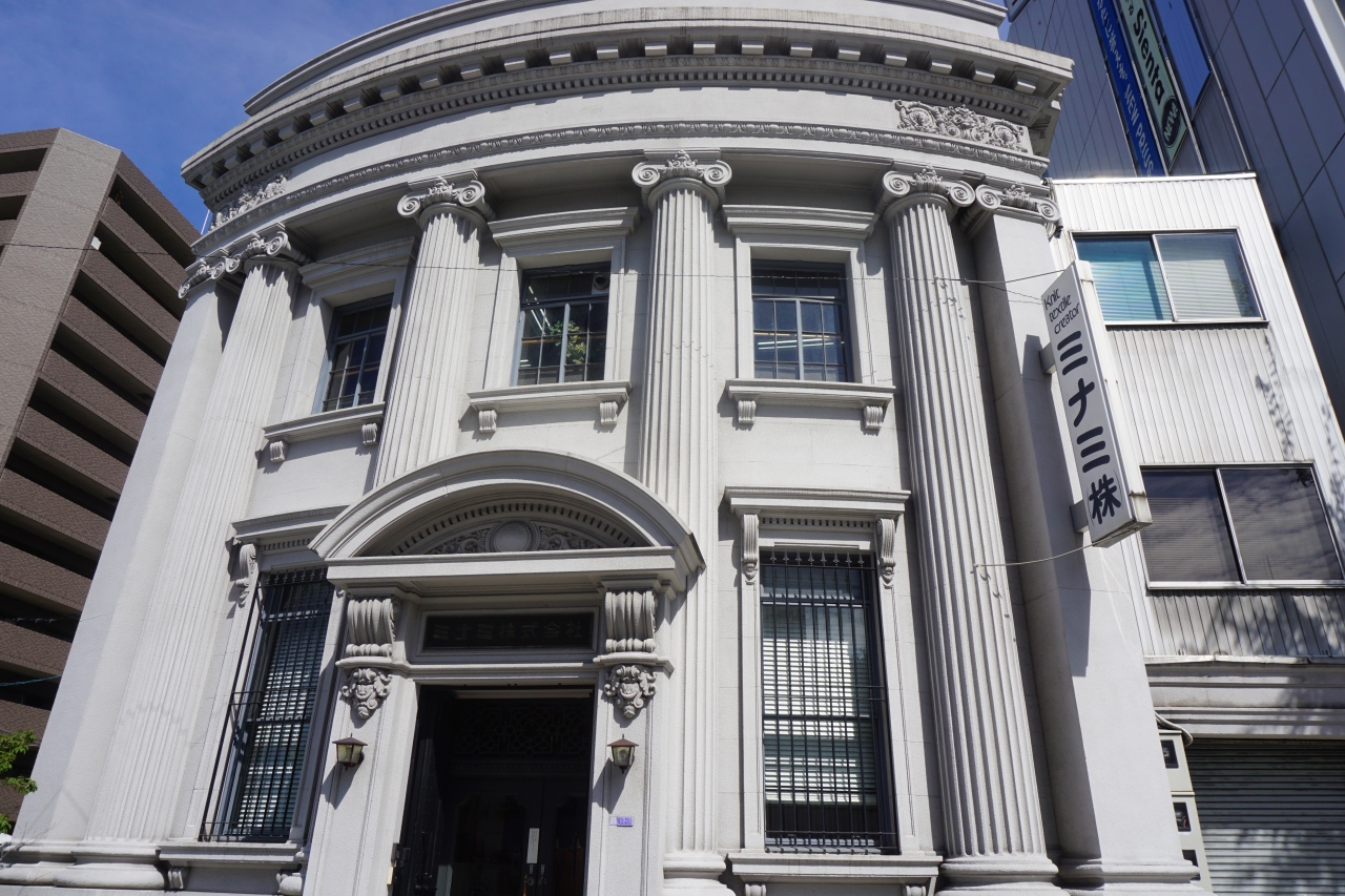 旧川崎貯蓄銀行福島出張所は国道二号線沿いの開けた場所。こじんまりした建物ですが、イオニア式ジャイアント・オーダーが整った美しさ。現在はミナミ株式会社社屋のようですが、かつての姿がそのまま残っているような瑞々しさも感じます。