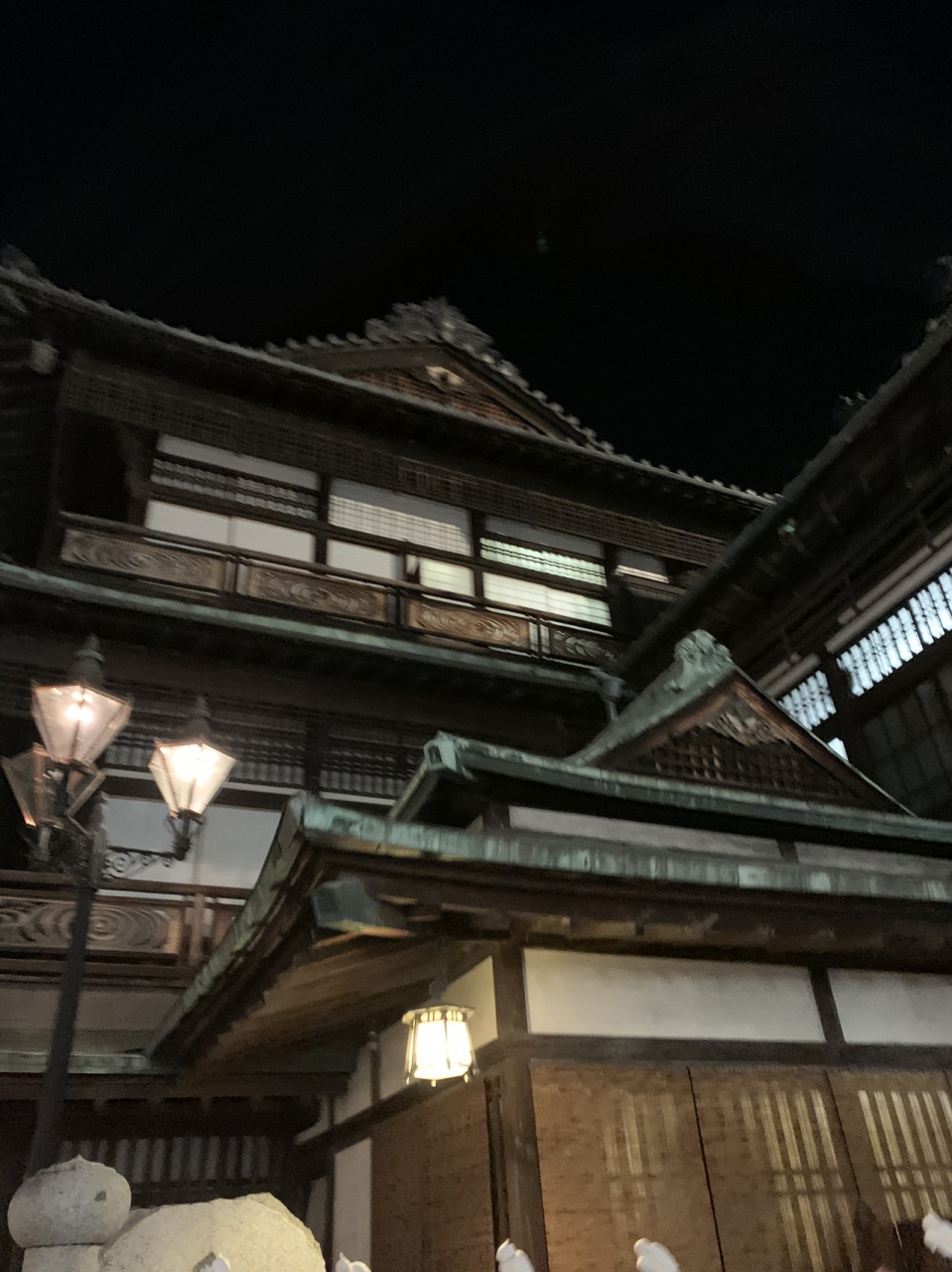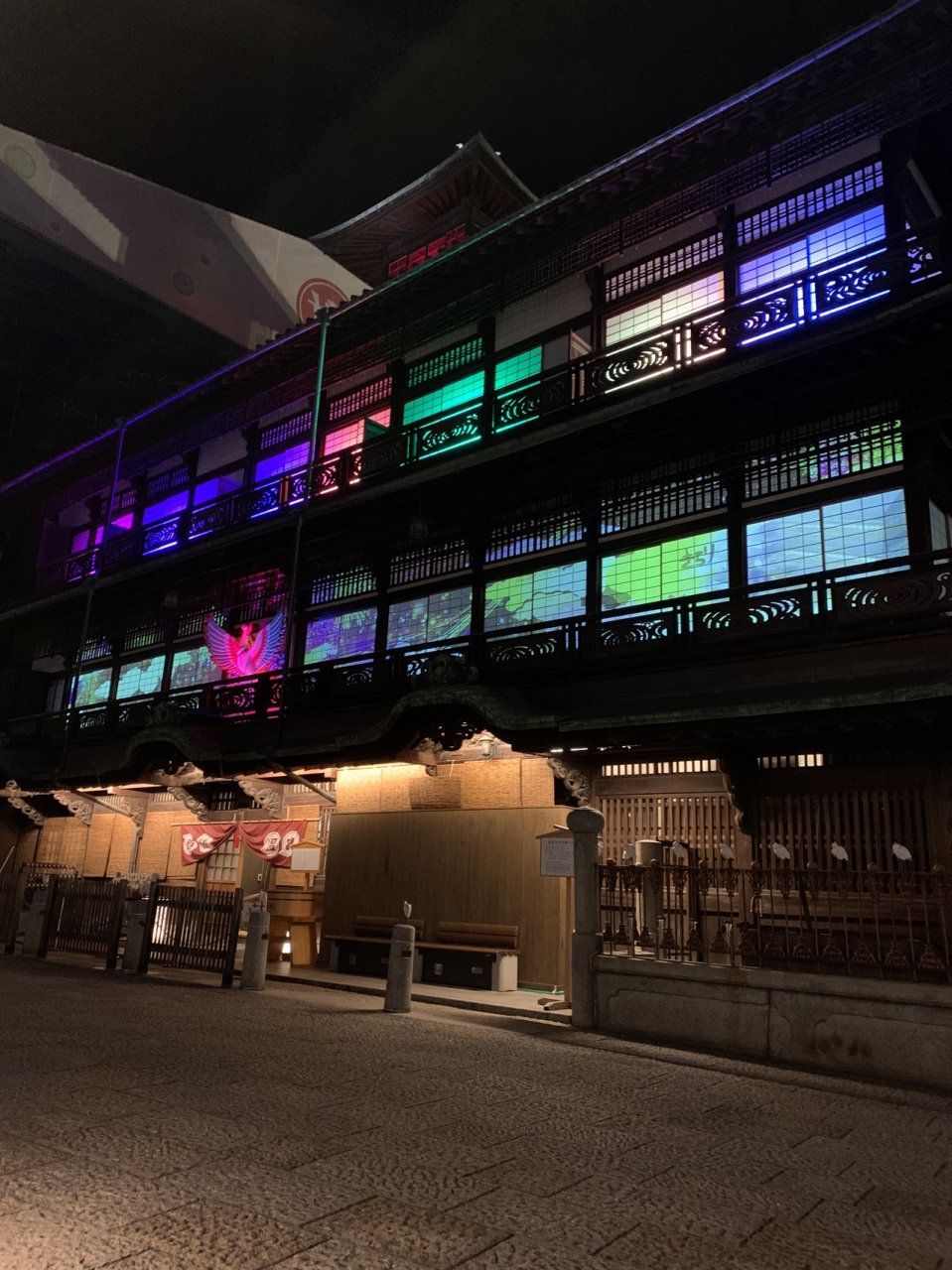 道後温泉本館にてプロジェクションマッピングが見れるとのことで夜に立ち寄りました。道後温泉では有名な温泉です。改装中なので現在は一部のお風呂しか利用できません。改装が終わったらまた利用したいなと思いました。