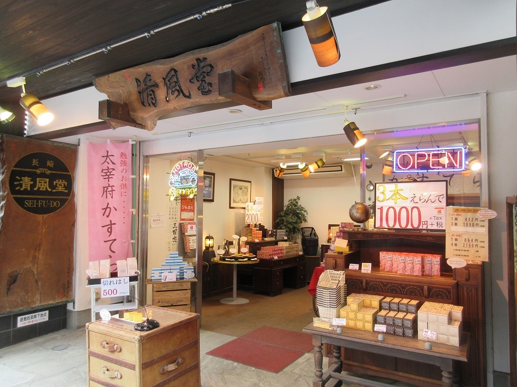 大宰府天満宮を訪れた際に、参道をお土産物を探しながら歩いていて見つけたお店がこちらです。長崎カステラのお店に大宰府でお目にかかるとは思ってもみなかったで、新鮮に映りました。店内はゆったりとした造りで、落ち着いて商品選びが出来ました。とりあえずお土産ということで、「長崎カステラ」ですがご当地限定らしい「大宰府カステラ」と書かれたカステラを購入しました。