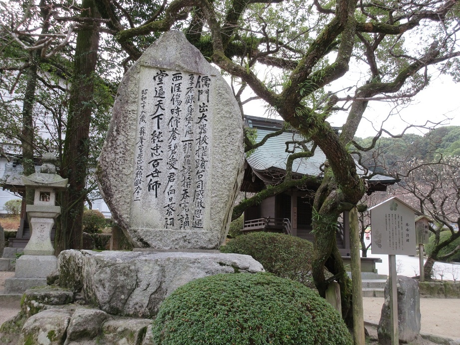 大宰府天満宮を訪問し、境内を散策していた際、楓社の近くに徳富蘇峰の詩を刻んだ大きな石碑が建っていました。東京の芦花公園ともゆかりのある徳富蘆花の兄にあたるそうです。菅原の道真を讃える詩らしいのですが、私には何が書かれているのか、漢字が難解で且つ達筆すぎて皆目見当がつきませんでした・・・。