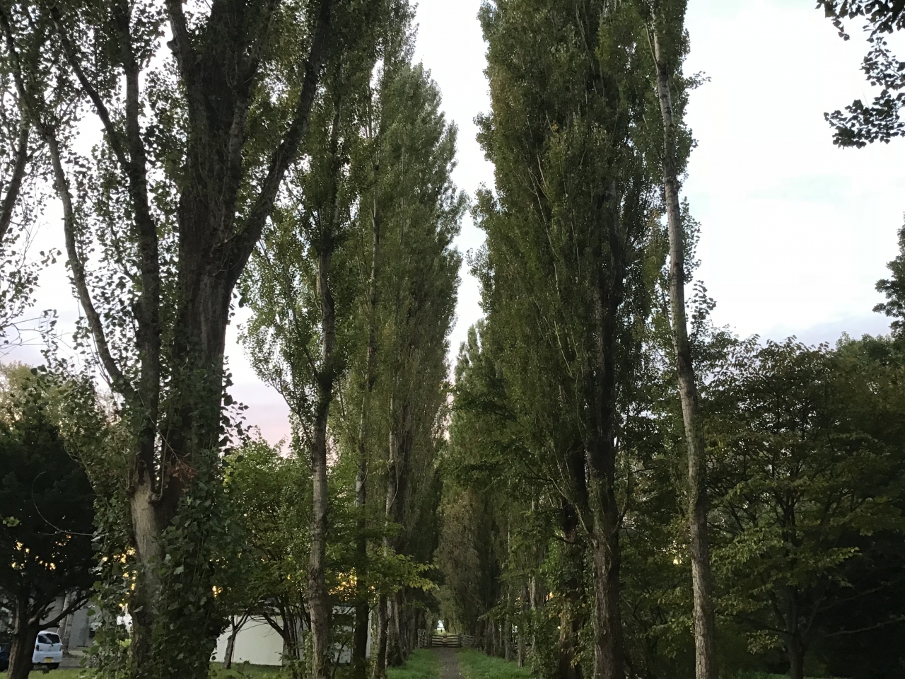 10月の訪問時期はまだ、紅葉には早く、まだ、緑系の並木通りでした。