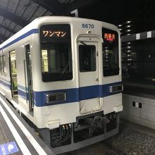電車は東武鉄道で一番古い車両を使用。なんとなく昭和50年、60年代を思い出す感じだが、ひと駅間なので、あっという間に着いてしまう。