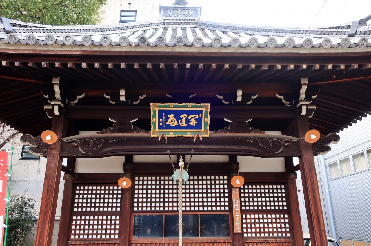 京阪電鉄の伏見桃山駅から西に延びる伏見大手筋商店街沿いにある日蓮宗のお寺だ。安土桃山時代の創建で、本殿は近衛関白家が寄進した御殿だという。破風が端麗で、千鳥破風の中に唐破風がデザインされている。境内には妙見堂があり、洛陽十二支妙見めぐりの一つに数えられている。手入れが行き届いた境内が印象的だ。