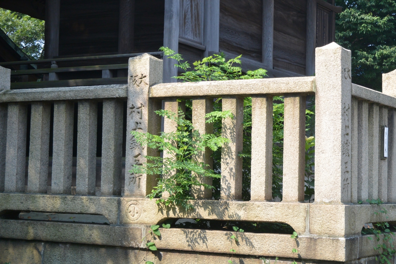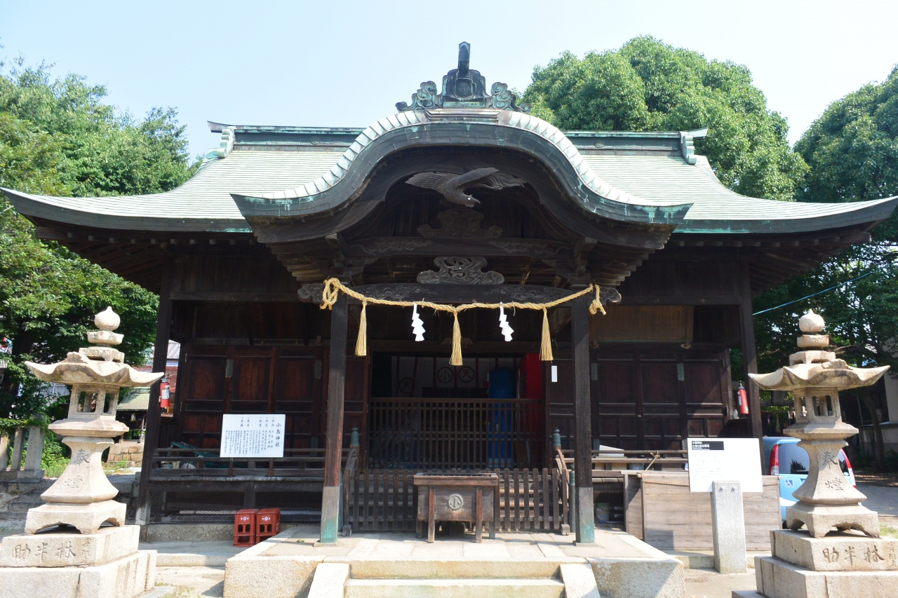 刀匠の子孫が氏神として祀ったのがはじまりとされているためか、現在では鉄鋼業繁栄の守り神になっており、鉄工所が奉納した玉垣も見られました。お祭りのためか何なのかわかりませんが、ドラえもんの張りぼてが社殿に置かれていたのにはちょっとびっくり。