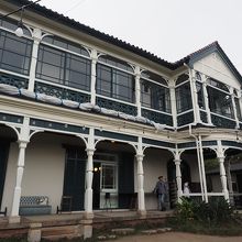異人館街、となっていますが、神戸市内の異人館街のように観光地化されているわけではなく、文化財登録されている洋館がぽつぽつあるような感じで、多くは非公開です。写真のグッゲンハイム邸は見学をさせてもらうことができました。芝生の庭もあって雰囲気のいい場所でした。