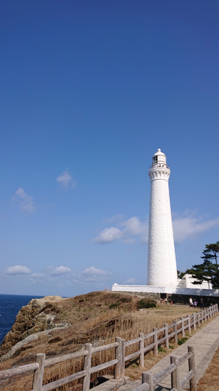 出雲大社から、稲佐の浜を経由して、海沿いをドライブ。灯台の前には、無料の駐車場があります。海面から灯台のてっぺんまで63メートルあり、日本一の高さとのこと。青い海に白い灯台がよく映えます。灯台のてっぺんには、階段で上ることもできますが、かなりしんどそうなので、上るのはあきらめました。
