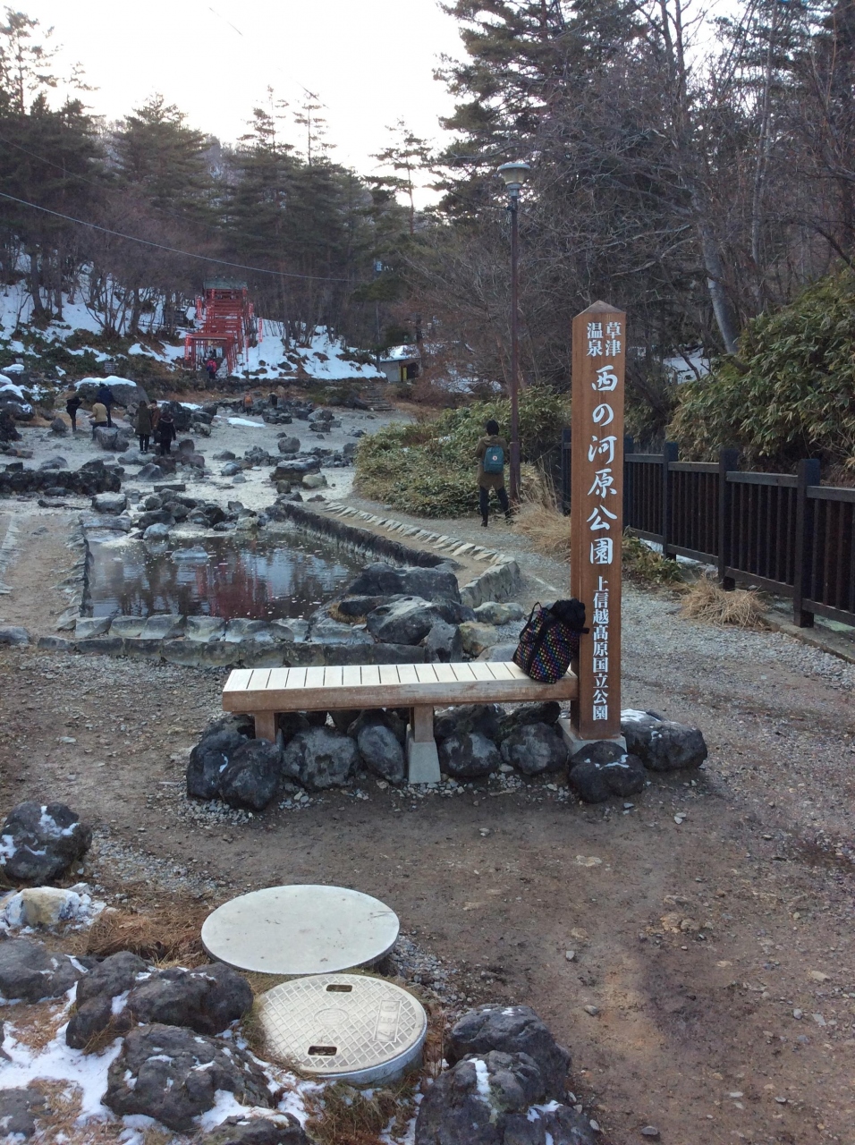 草津温泉の中心の湯畑から歩いて10分位の場所にある公園です。湯畑からは多少離れている為かあまり客も多くなく落ち着いた雰囲気です。