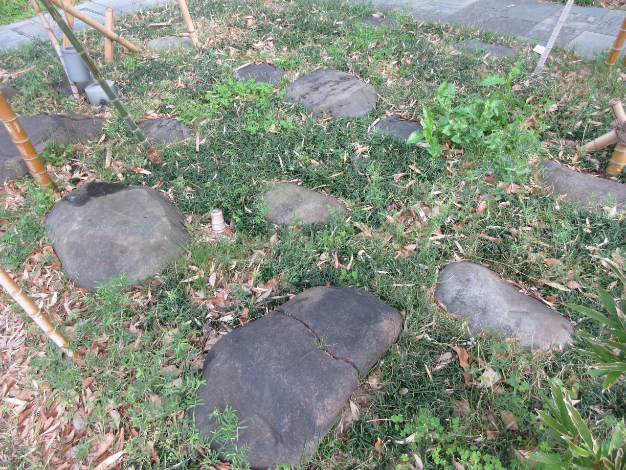 九段下駅から内堀通りを南へ数分歩いたところにある千代田区役所の前庭にあります。江戸城の米蔵の礎石が再現されています。明暦大火で焼失した米蔵の礎石が遺跡発掘調査で出現しました。説明板に発掘当時の画像や航空写真があり、広い一帯に蔵があったことがわかります。説明板を読まなければ、植栽と石が並んでいる区役所のすっきりした前庭だと気にしなかったと思います。隣に建つ大隈重信邸跡の石碑と共に見てはいかがでしょうか。