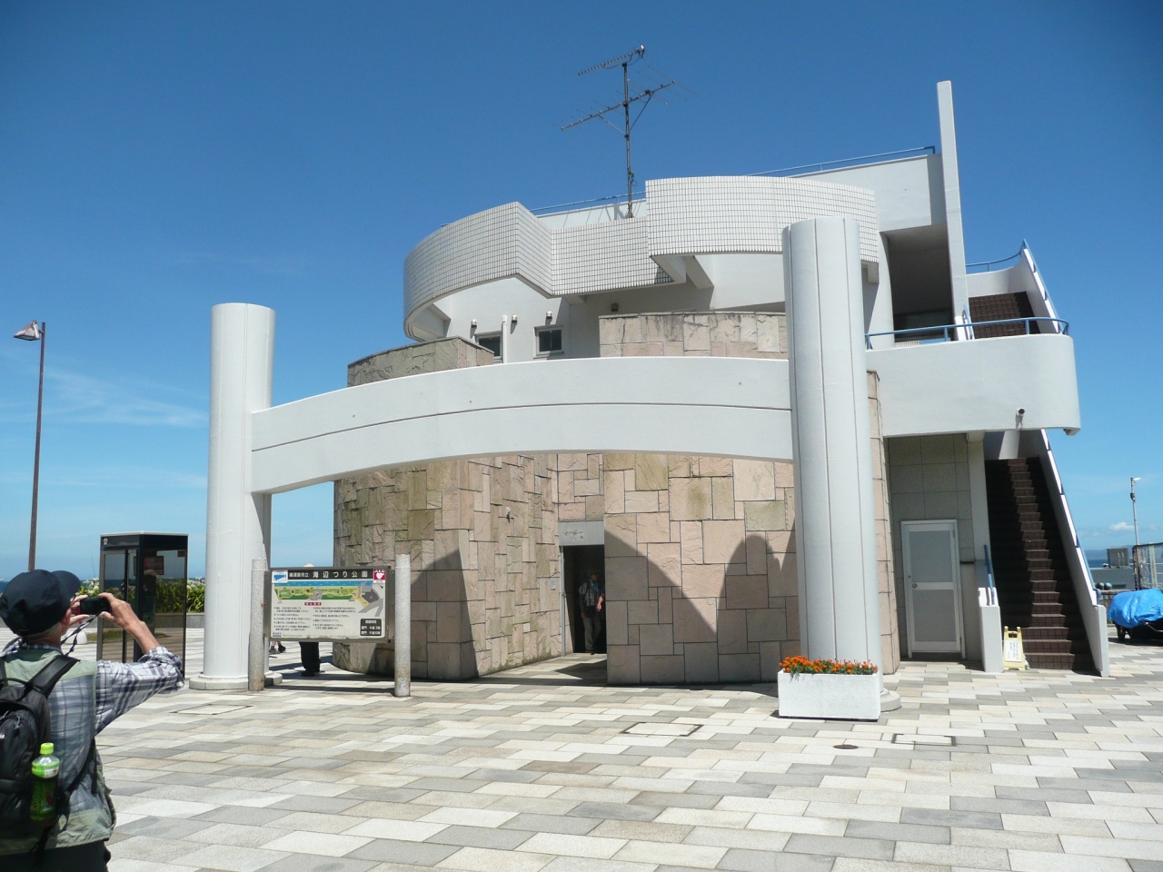 入口の正面には、鉄筋コンクリート製のオブジェの様な建物がありましたが、これは管理棟でした。この公園に到着したときは丁度12時過ぎだったので、我々は管理棟を背にして海を眺めながら昼食を取りました。