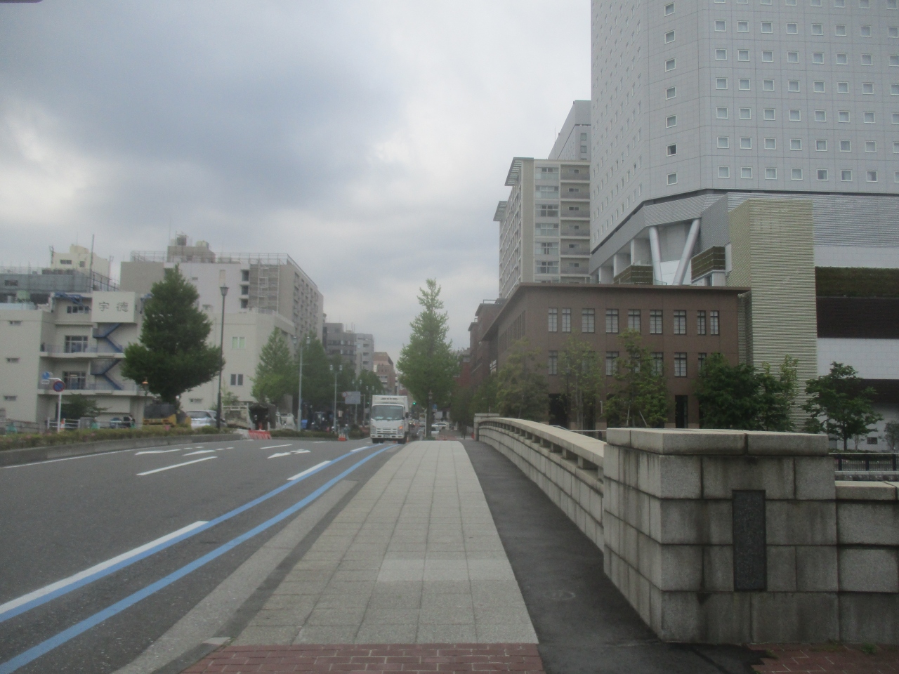 馬車道から通じる万国橋通りと新港地区を結ぶ橋です。現在の橋は2代目で、明治期の工事だったようですが、コンクリート製のがっしりとした橋でした。橋に向かう途中の緩やかな坂の部分も石積みしており、重量感がありました。車線と車線の間に植樹帯があり照明灯が設置されていました。
