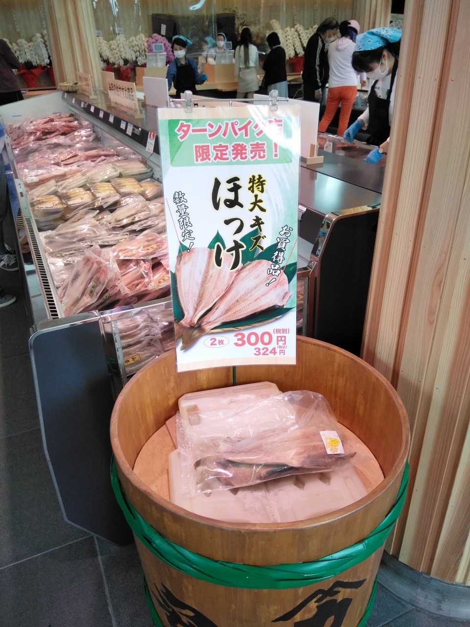 昨日、根府川店で買った「アジのひらき」がうまかったです。本日、娘親子(横浜在住)が来てその話をしたら買って帰ると言うので少し遠回りしてここに来ました。ここは近年に新しくなって綺麗でした。駐車場は30台分以上あり外出自粛の中でお客は多い方だと思いました。アネスト岩田ターンパイクを降りてすぐなので箱根の帰りに寄っていくと思います。コロナでどうかと思いましたが入れ替わりでお客は多い方だと思います。アジやホッケやイカなどは2枚が多く、一部日本産ではないですが加工は「山安」さんだと推測します。