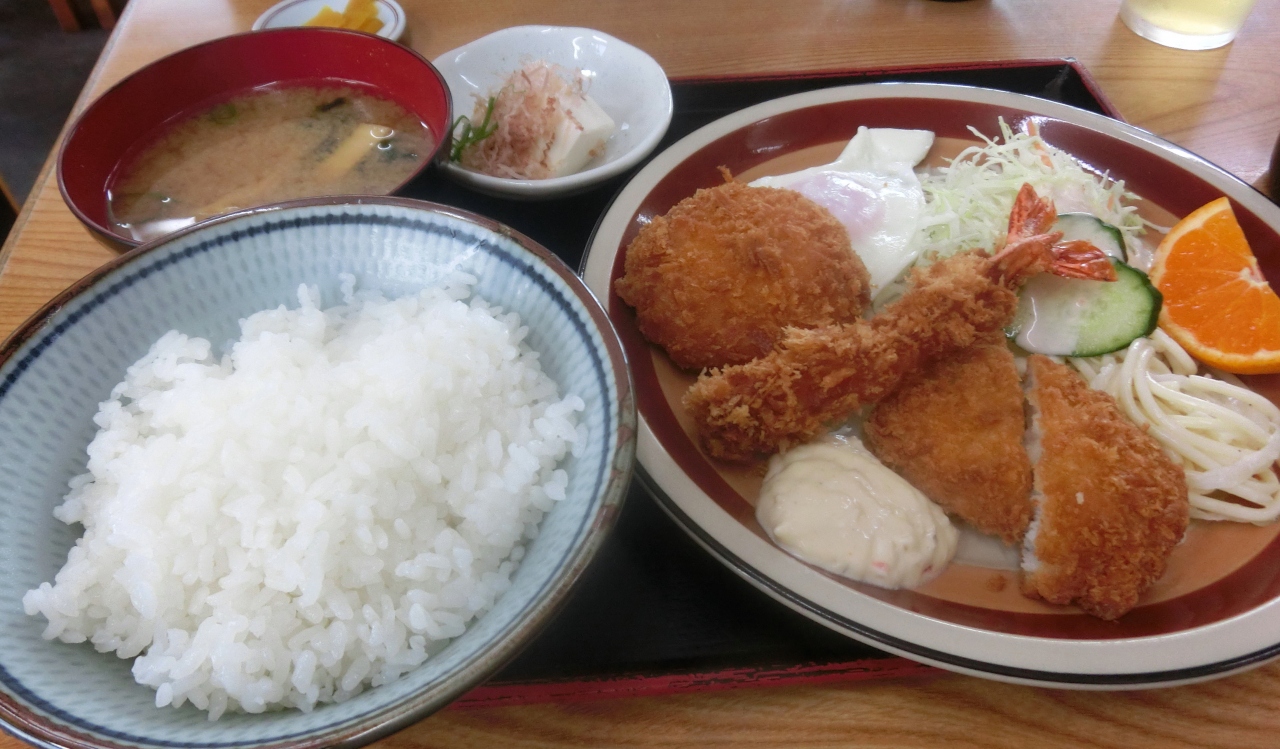 途中、交差点の一角に定食屋があった。声を掛けたら、開店前だがいいですよと若い人が入れてくれた。