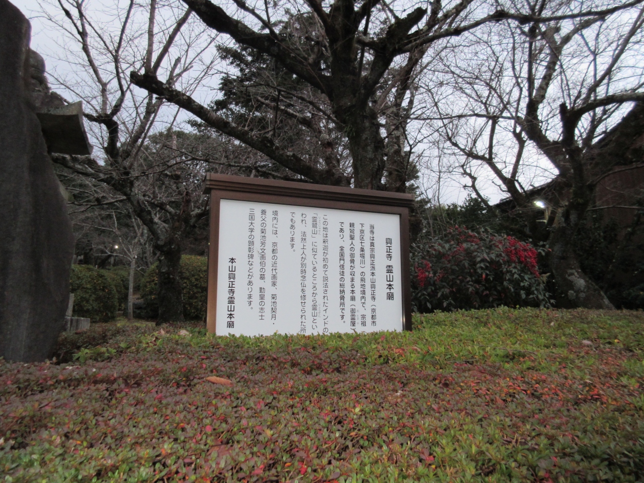 霊山本廟は、清水寺への産寧坂に参道がありました。本山興正寺は宗祖親鸞聖人のご廟所とする別院です。本山興正寺は明治九年、本願寺からの別派独立し、この地に宗祖のご遺骨を納め、本廟としてきています。全国の興正派門信徒のご遺骨もここで眠るのです。