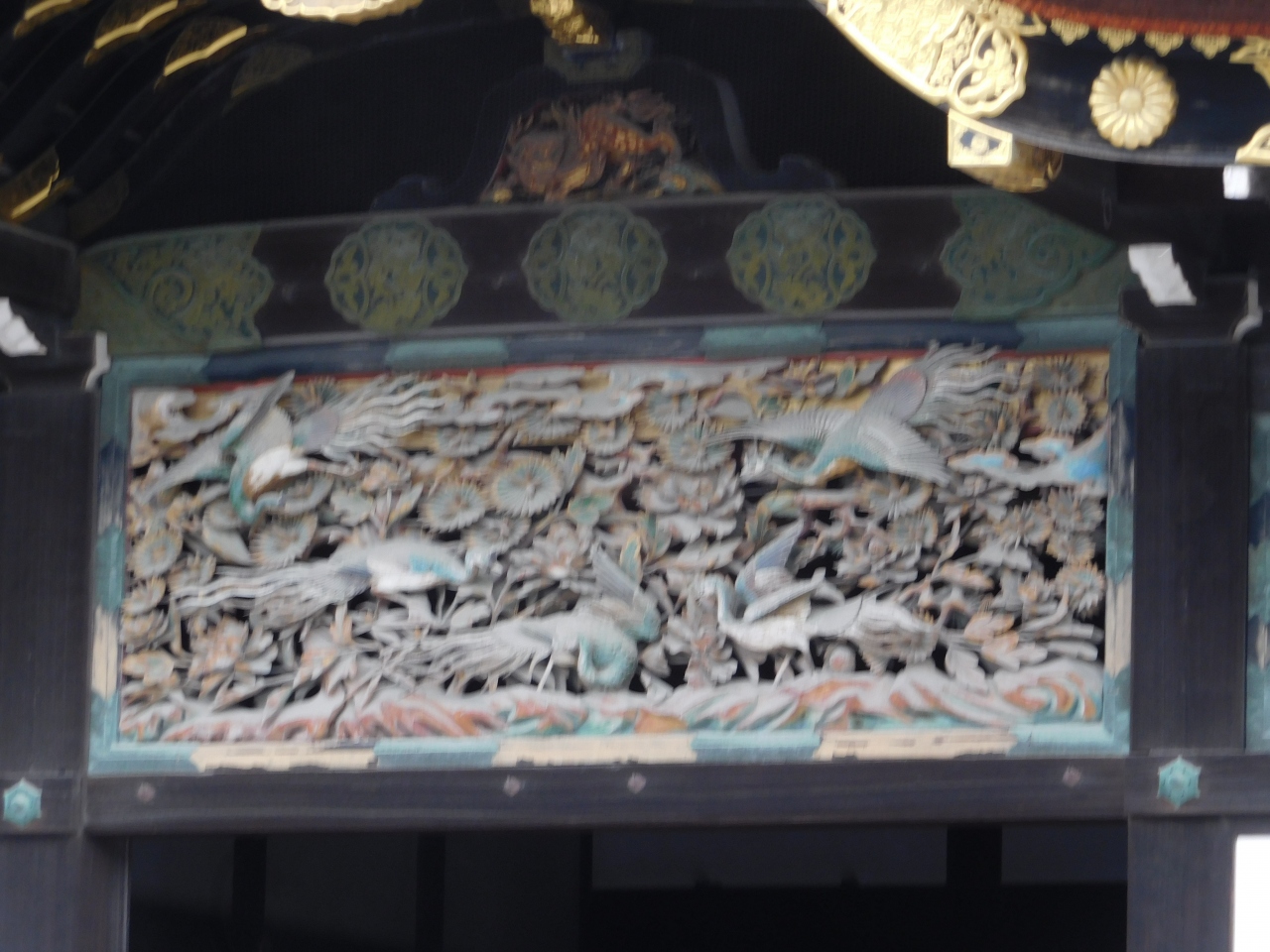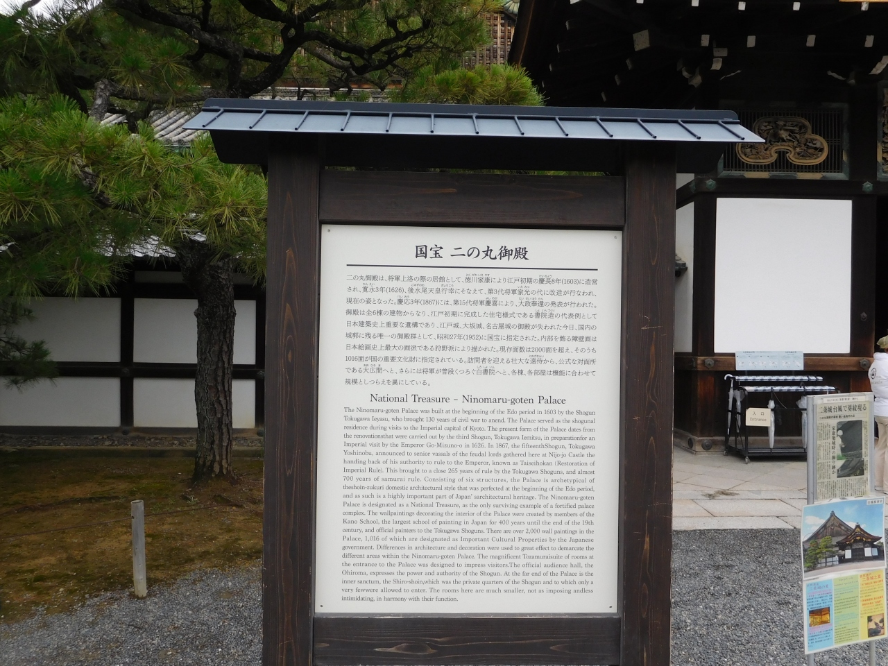 二条城 「二の丸御殿」は、豪華絢爛な唐門を抜けた先にあり、入口で靴を脱いで、御殿内を見学しました。部屋数が33室、800畳余りの広さがあるので、御殿の規模の大きさに圧倒されました。また、「夏の特別企画」開催中であった為、大広間四の間の室内に入って見学する事が出来、ちょうど良いタイミングで来れて良かったと思いました。