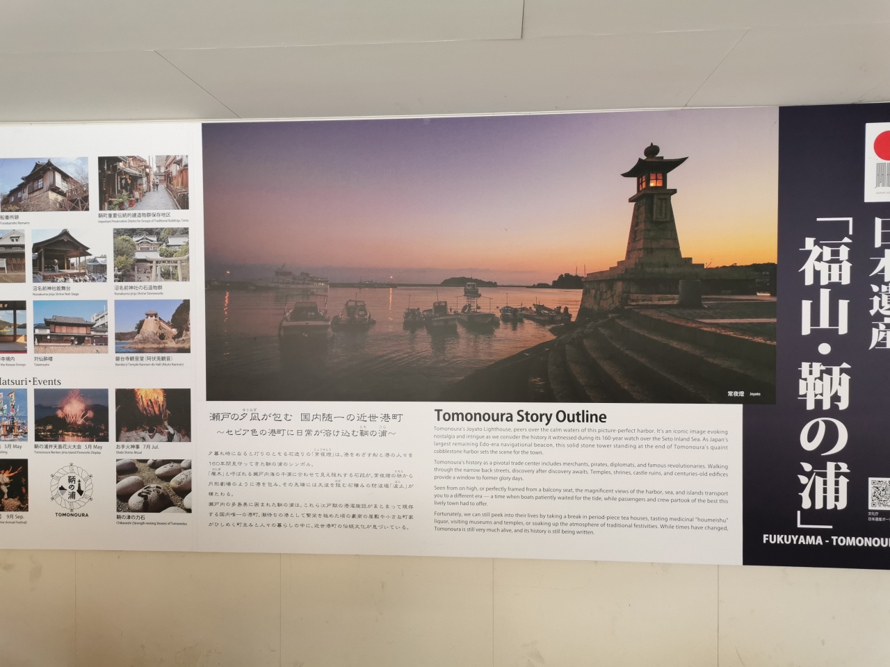一人旅。倉敷から広島方向へ、福山で「鞆の浦」の看板がありちょっと寄り道です。「鞆の浦(とものうら)」は、歴史を感じる港町。なんでもジブリの宮崎監督が「崖の上のポニョ」のイメージを作ったとの事(ほんと?)町営有料駐車場に車を止めて港町を散策しました。大人が交差できない狭い路地や、古い町並みが良い風情でした。