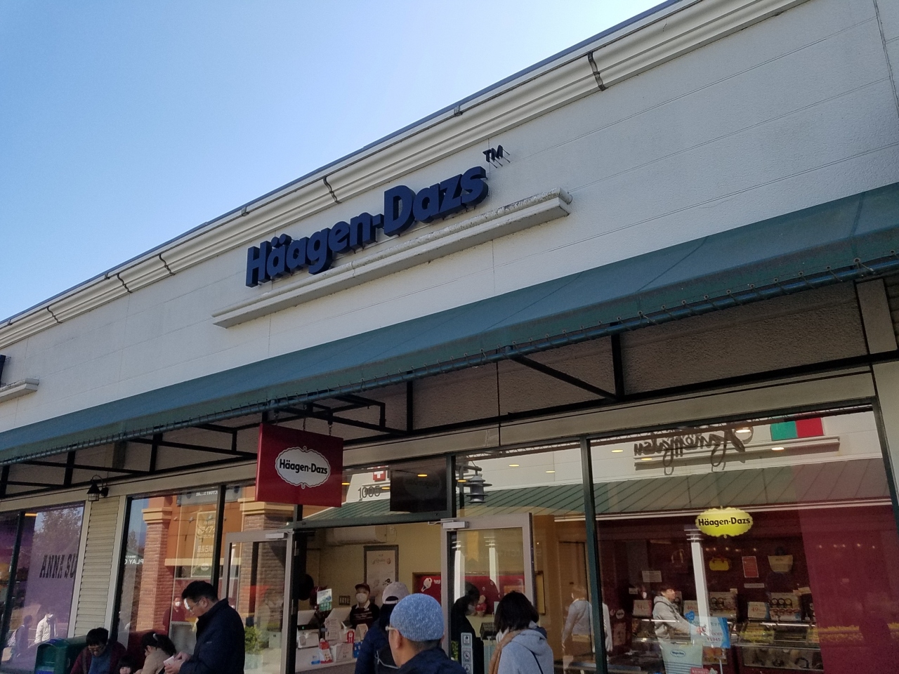 御殿場プレミアムアウトレットのハーゲンダッツは、ウエストゾーンからイーストゾーンに向かう横断橋の手前にあります。買い物の最後に立ち寄りお土産で買いました。お馴染みの高級アイスクリームは人気で冬でしたがポカポカ陽気だったのでその場で食べている人もいました。