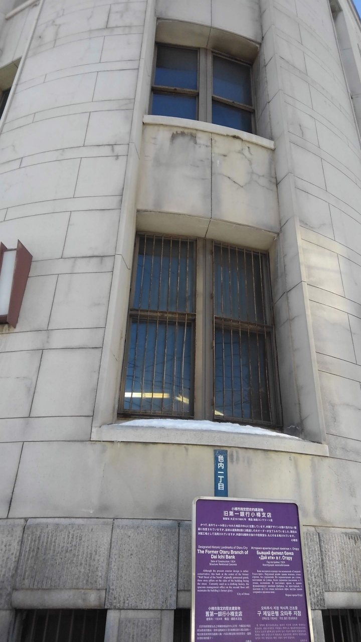 北のウォール街の交差点にあります。この建物は1924(大正13)年に建築されました。かつての銀行は 今は縫製工場として使われています。なので 中を見ることはできません。 建設当初は北側と東側の2面に大きなオーダーが立てられ玄関部もかなり凝った装飾だったそうです。